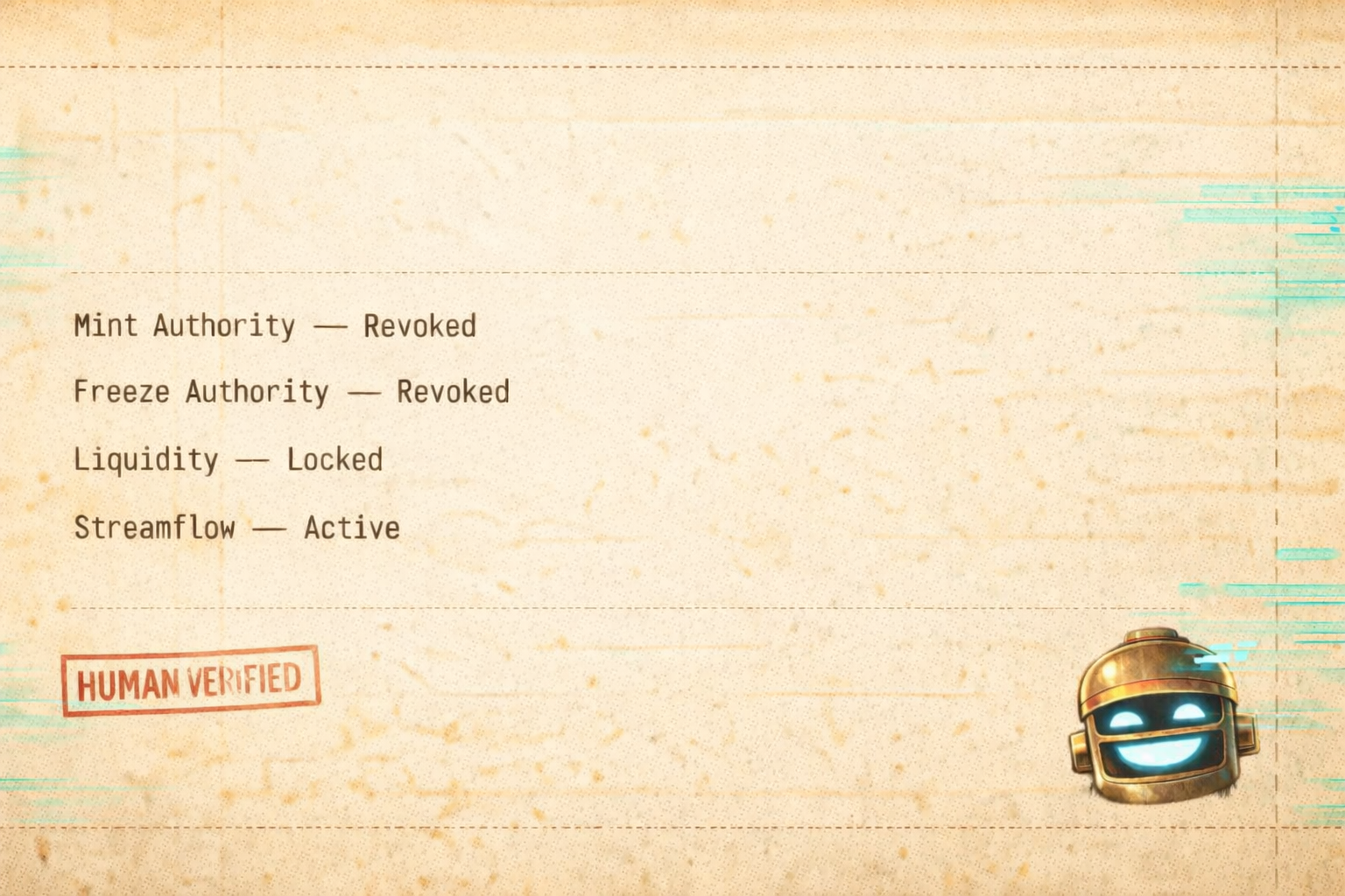 At launch, both Mint Authority and Freeze Authority will be permanently revoked.