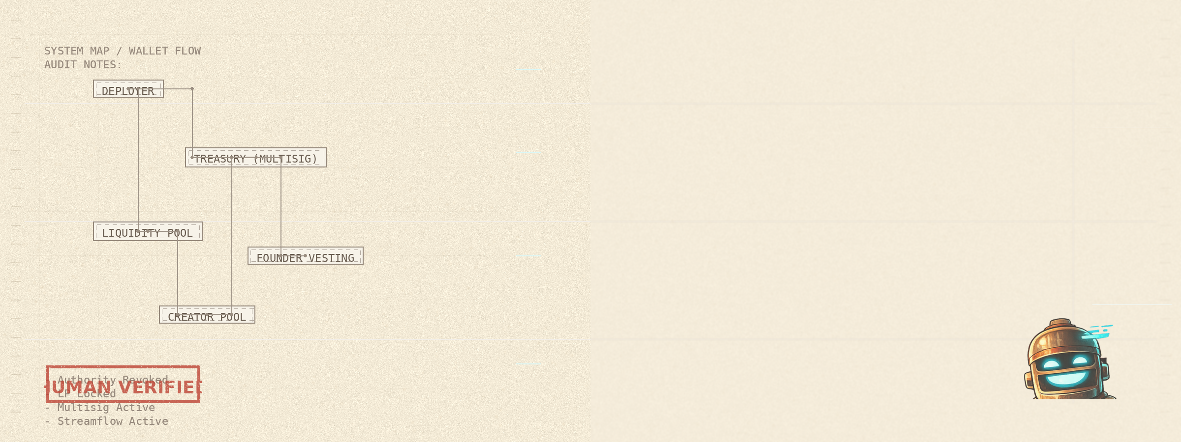 No founders tokens are unlocked at launch. Streaming distribution prevents large sell events and aligns founder incentives with the long-term success of the project.